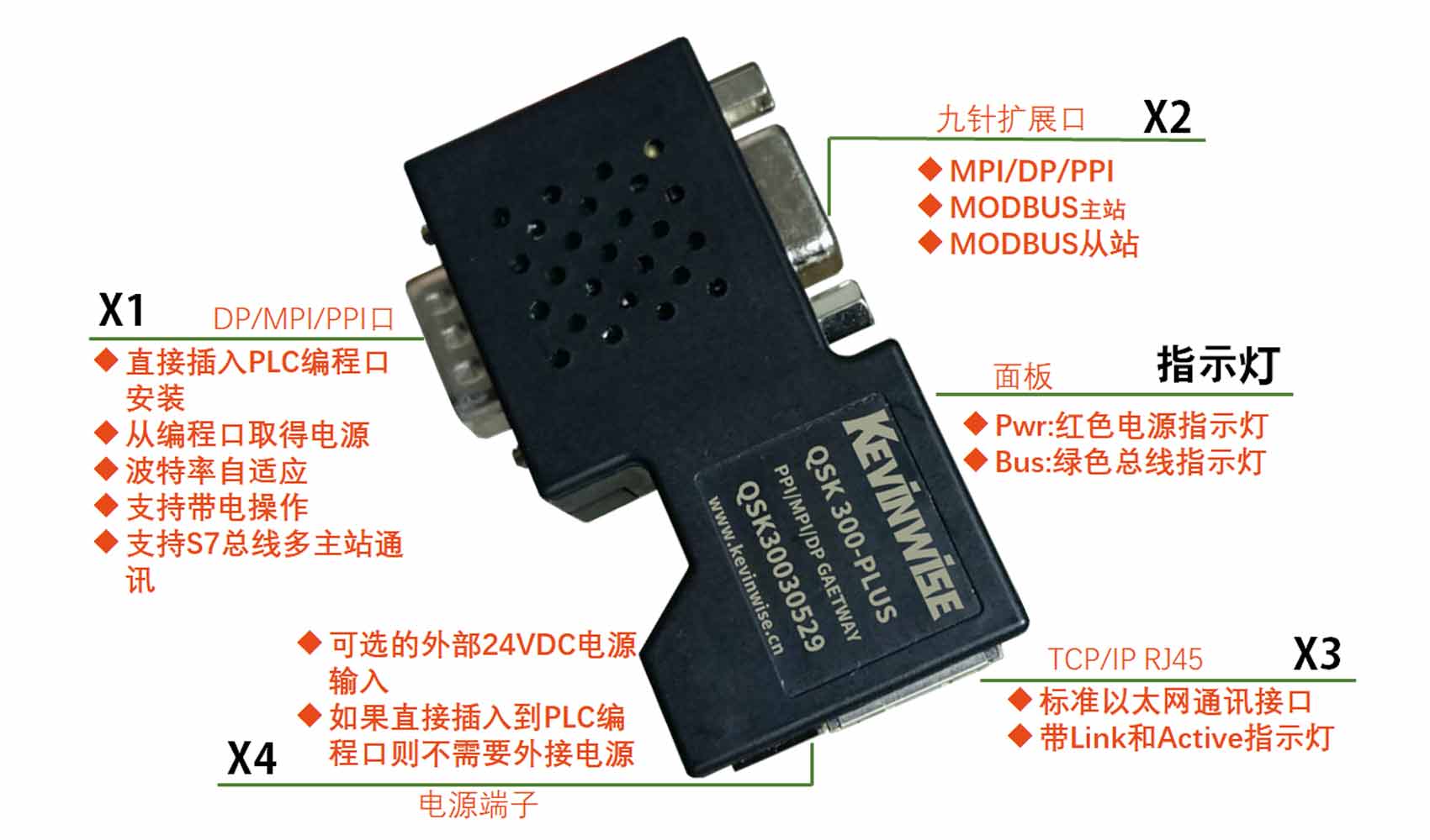 | 以太网接口(X3) | Link/Active指示灯,线序自适应 | |
